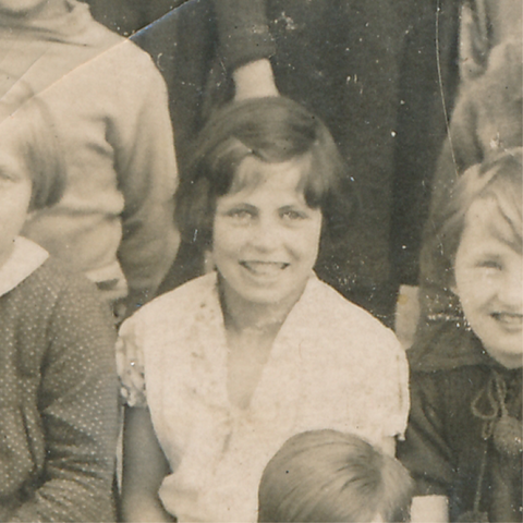 Op deze foto zie je Rachel van Gelderen als ze iets ouder is. Zij woont met haar familie in het bovenhuis op nr 29. Ze zijn met acht kinderen thuis.